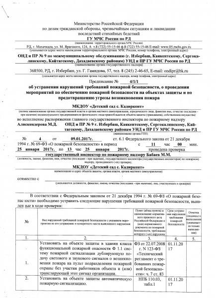 Предписания органов, осуществляющих государственный контроль (надзор) в сфере образования, отчеты об исполнении таких предписаний (при наличии)